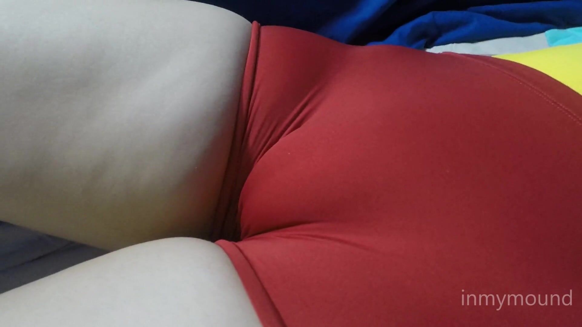My gym shorts and swimsuit make my tight pussy mound cameltoe like this.