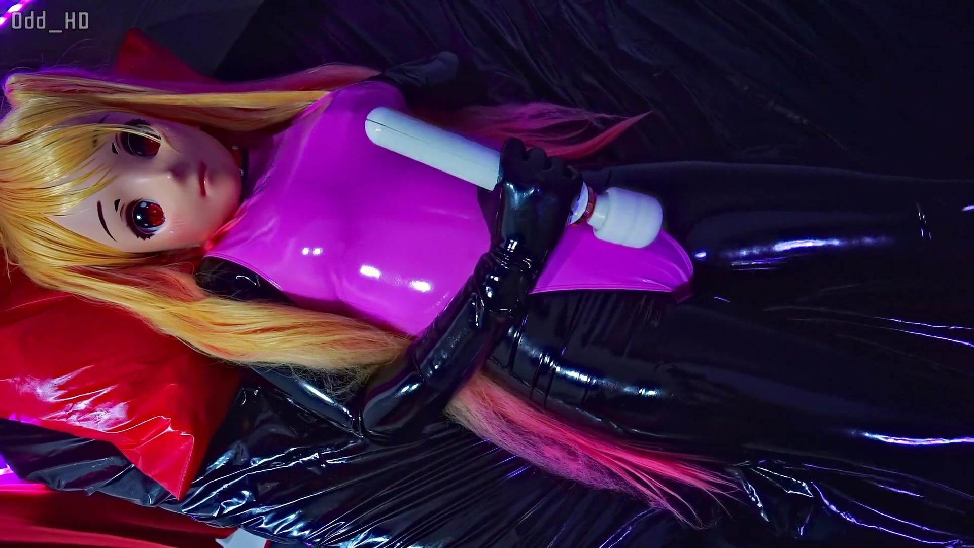 A kigurumi rubberdoll is enjoying herself