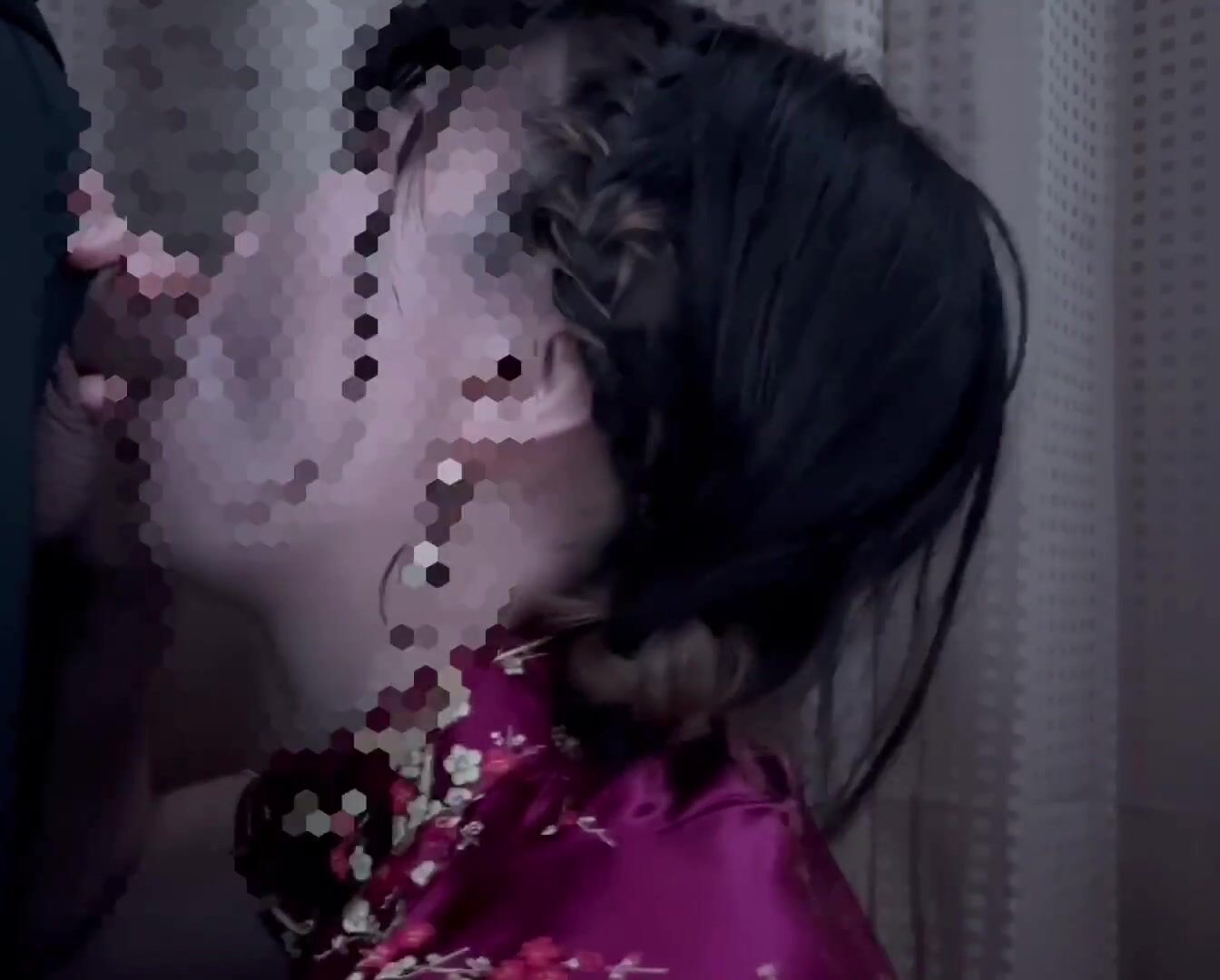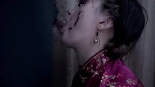 Female college student put on a Chinese dress and have a blowjob and cum in mouth