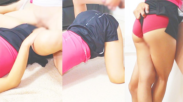 テニスウェアの横から下着ずらし挿入 インナーショーツアンスコにクリ擦り付け素股自分で何度も絶頂 最後はテニスウェアにぶっかけ射精