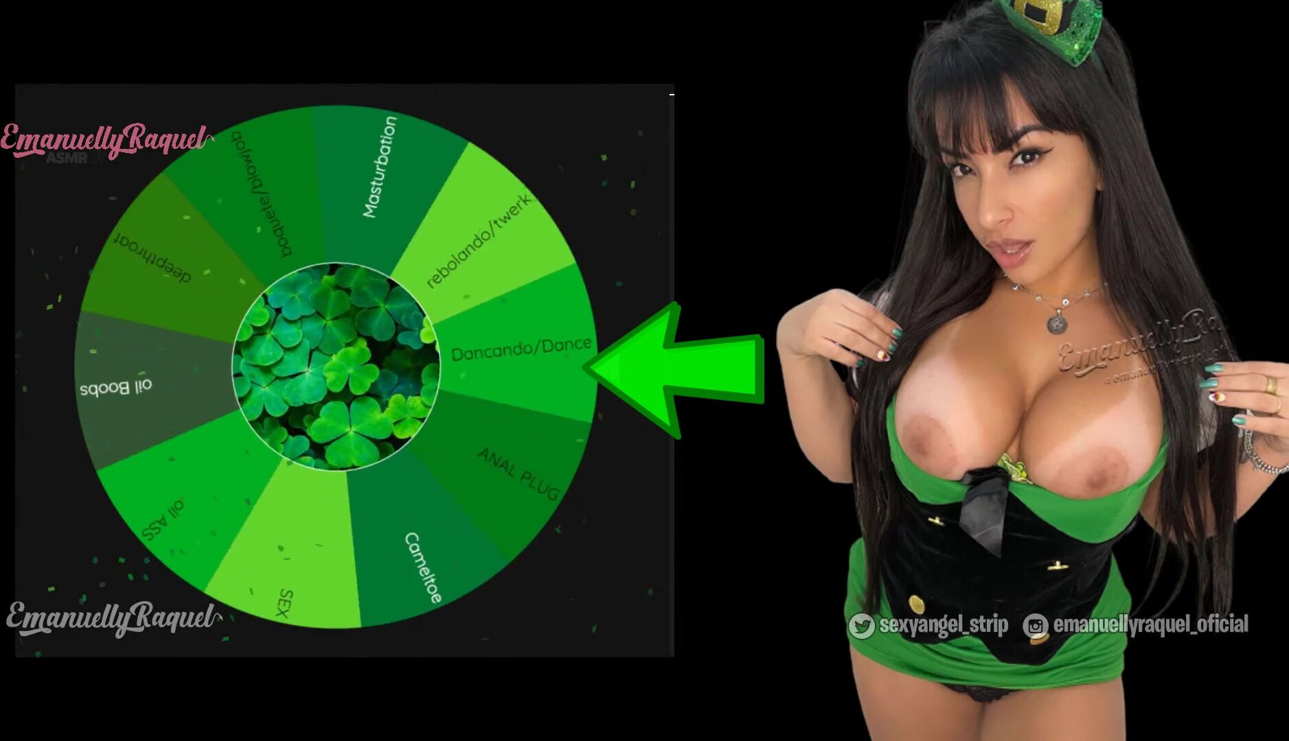 Wheel of sex jerk off game sexy girl celebrating the St Patrick's day cosplay twerking and teasing